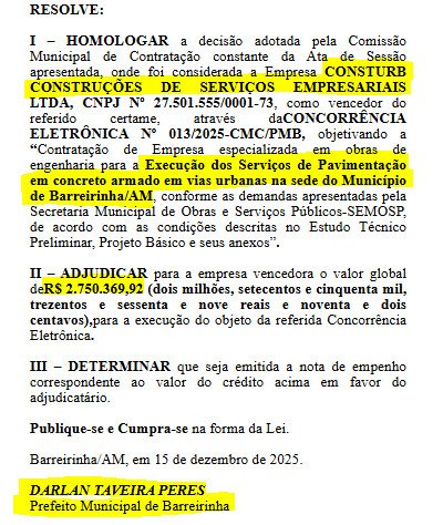 Vale ressaltar que o Tribunal de Contas do Estado do Amazonas (TCE-AM), mira a gestão de Darlan Taveira no município de Barreirinha por uma série de irregularidades em contratações, que levantam a suspeita de que o contrato de pavimentação não passa de uma fraude.