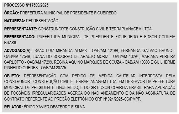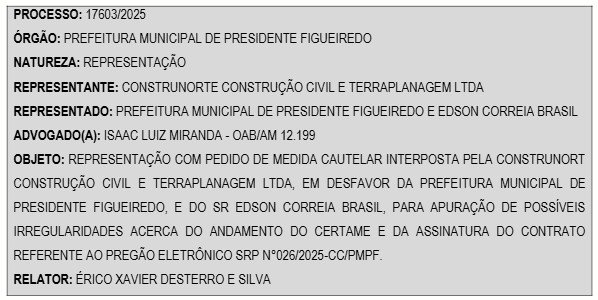 A Prefeitura de Prefeitura de Presidente Figueiredo e seu gestor, o prefeito Antônio Fernando Vieira, mais conhecido como Fernandão, tem 15 dias para responder ao TCE-AM e justificar as possíveis irregularidades.