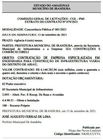 O prefeito Augusto Ferraz mergulha Iranduba em um escândalo de proporções inéditas ao entregar um contrato de R$ 6,1 milhões para a Iza Construções e Comércio Eireli, uma empresa que já foi alvo direto da Polícia Federal na Operação Vorax, investigação que expôs um esquema de fraudes em licitações, desvio de dinheiro público e pagamento de propina ao ex-prefeito de Coari, Adail Pinheiro.