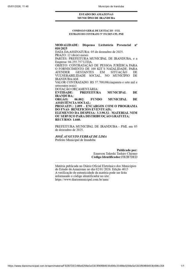 Às vésperas de uma eleição onde a sua esposa, Luana Ferraz, é pré-candidata ao cargo de deputada estadual, o prefeito Augusto Ferraz (UB), vai gastar R$ 490 mil reais em ‘dentaduras’ para distribuir para o povo de Iranduba.