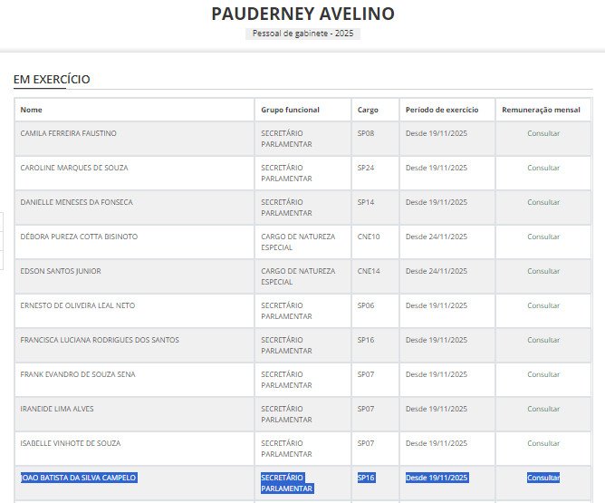Apesar do nome do assessor de Pauderney aparecer na lista, ele ficou de fora da operação Galho Fraco neste primeiro momento, mas tanto ele quanto o deputado, podem ser incluídos na investigação.