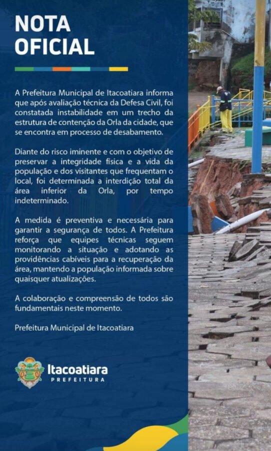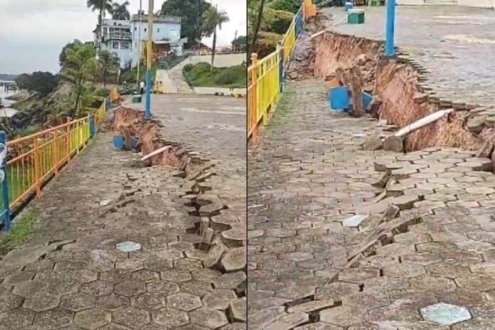 Vídeos da orla com as erosões, foram compartilhados em redes sociais, mostrando a situação da frente da sede do município de Itacoatiara.
