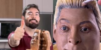 Patixa Teló ganha bolo com seu rosto de confeiteiro